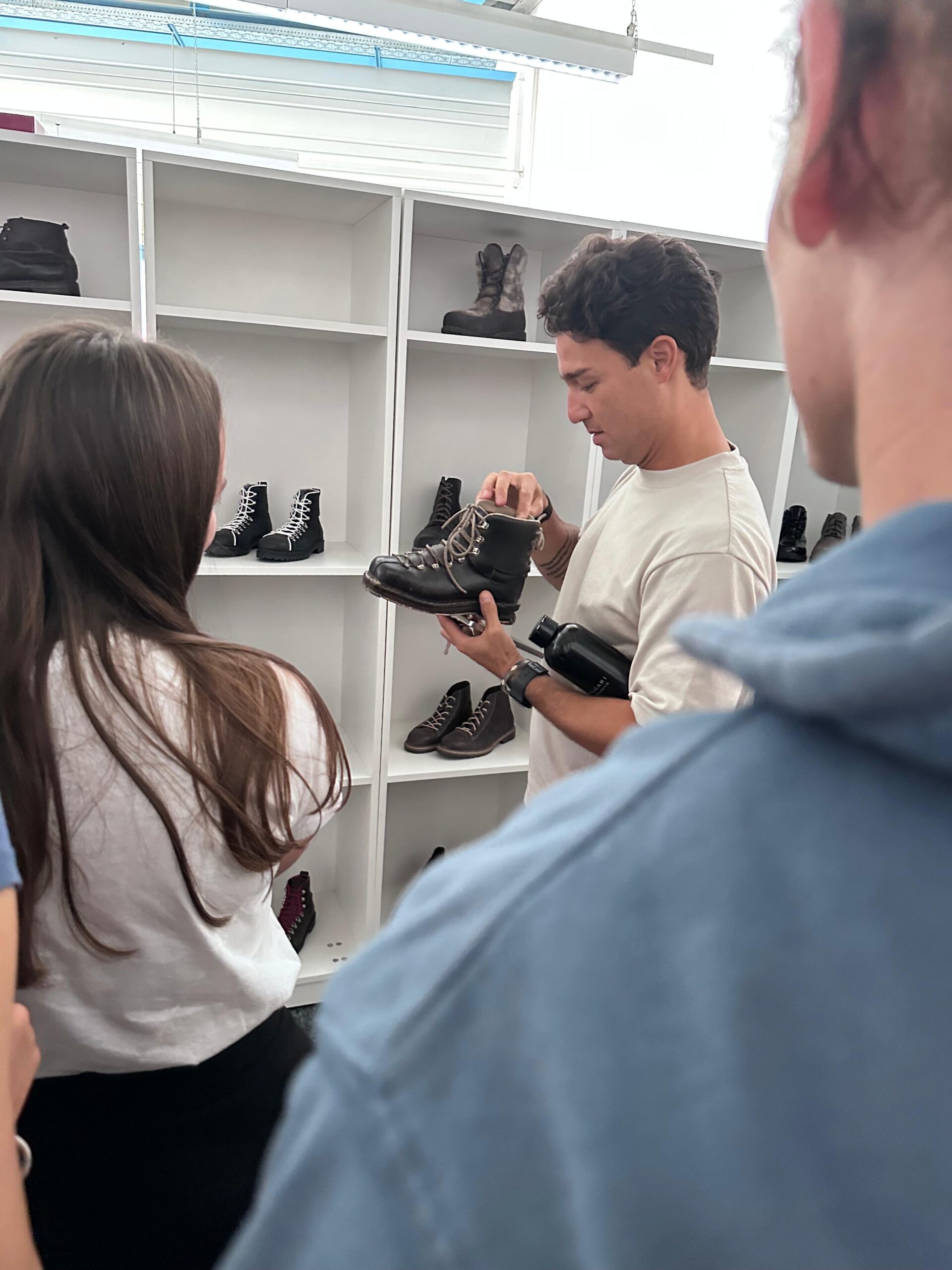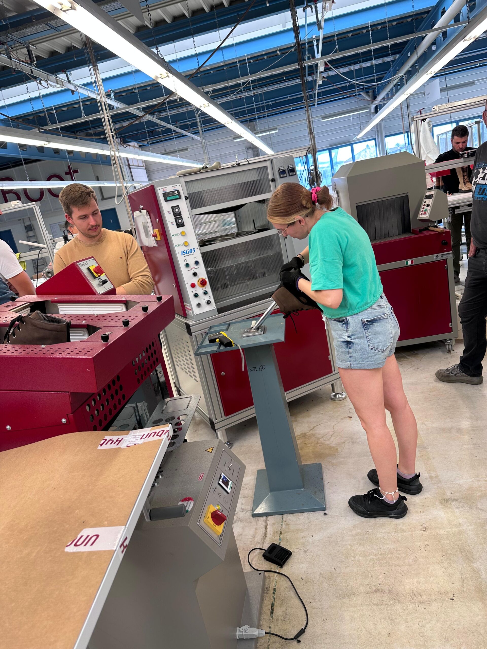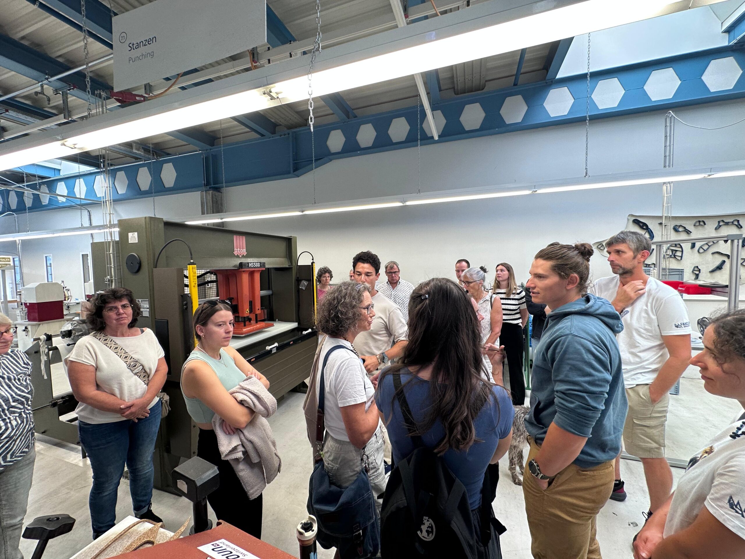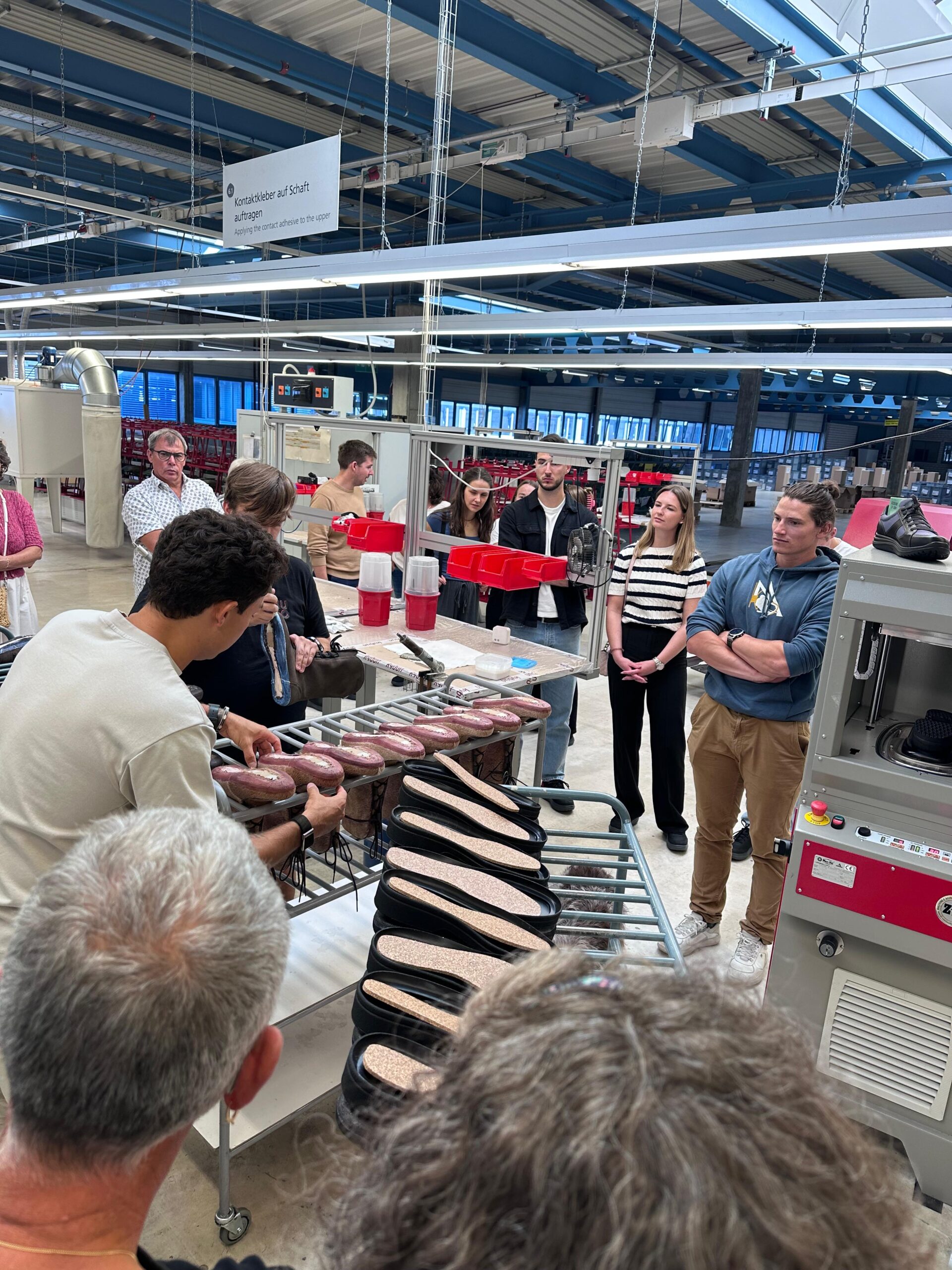 Karl Müller führte uns persönlich durch die Firma in Sennwald. Wir sahen die verschiedenen Schritte, die es braucht, bis ein Schuh hergestellt ist. Vieles wird von Hand gemacht und braucht spezielle Maschinen, Knowhow und handwerkliches Geschick. Auch durften wir in die Zukunft schauen: Eine neue sehr komplexe Maschine, die den Schuh selbständig zusammensetzen wird.